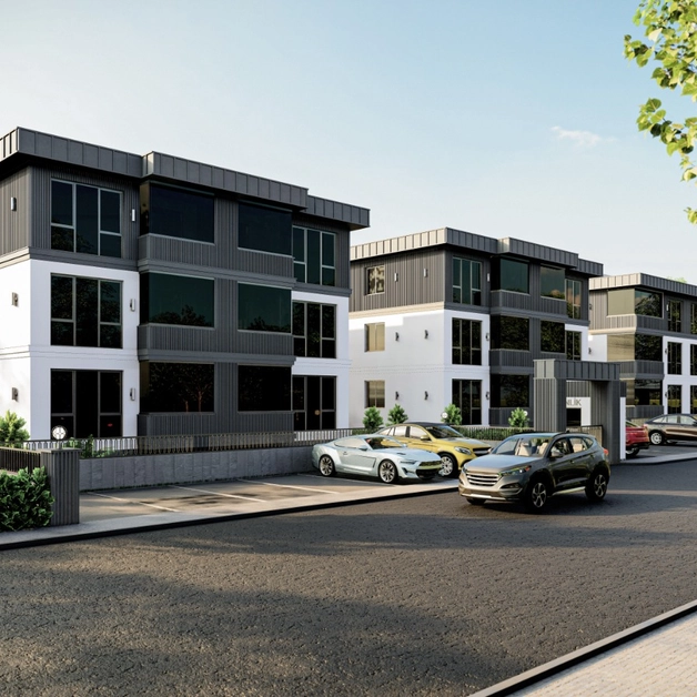 - Özellikler : Modern mimari, geniş balkonlar, yüksek tavanlı daireler, otopark